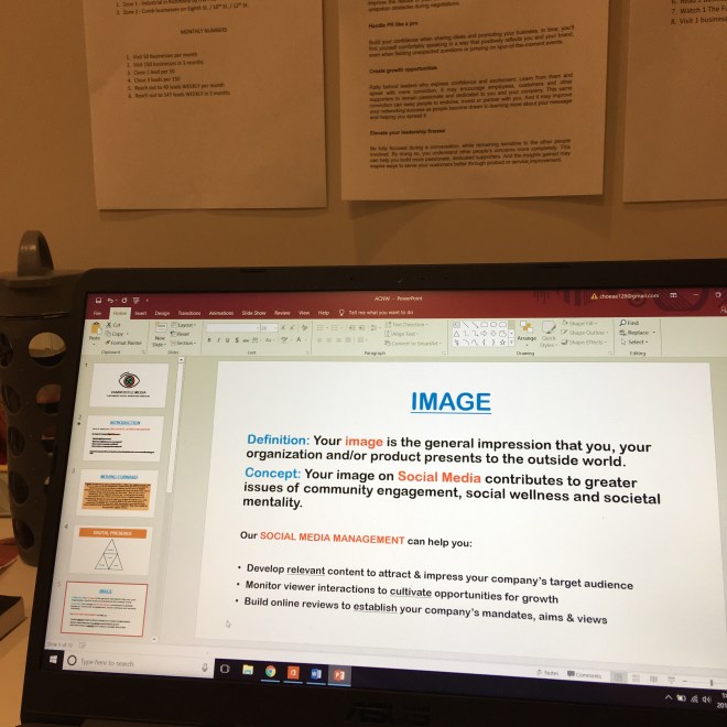 In addition to photographing documents/collateral, I took photos of my work process on the computer. Here, I am working on a presentation for The Arts Council of New Westminster. This was our first non-profit organization bid and I presented to Executive Director Stephen O’Shea and member artist Lee Down (founder of Arts, Artists, Artwork)